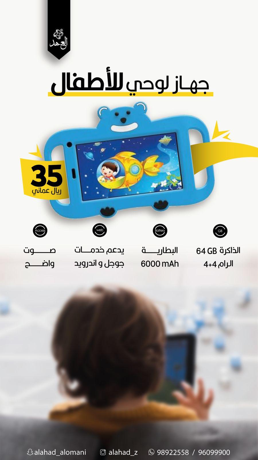أفضل جهاز لوحي تعليمي للأطفال بإمكانك تحميل برامج تعليم الحروف العربية والحروف الانجليزية والألوان وتفعيل نظام الحماية وتحديد وقت الإستخدام موقعنا في الخوض / شارع البركات فريق العهد 96099900 - 97779712 - 98922558